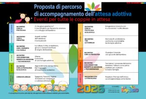 Il programma di accompagnamento all’attesa è un insieme di attività che vengono proposte alle famiglie sino all’abbinamento, e vuole essere un supporto psicologico, formativo ed esperienziale a tutte le famiglie “in attesa”. In particolare vengono proposti incontri informativi sulla situazione dei paesi stranieri, serate a tema (ad esempio sulle cucine e feste, sulla geografia oppure sulle favole dei diversi paesi), visione di film sui temi riguardanti l’adozione, incontri con i referenti esteri.